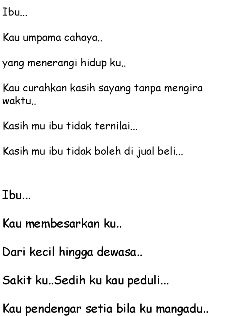 Apakah memang kita lebih mencintai Ibu. Dan Tuhanmu telah memerintahkan janganlah kamu semua menyembah melainkan Dia dan berbuat baiklah kepada dua ibu bapa. Sajak Pengorbanan Ibu Pdf.