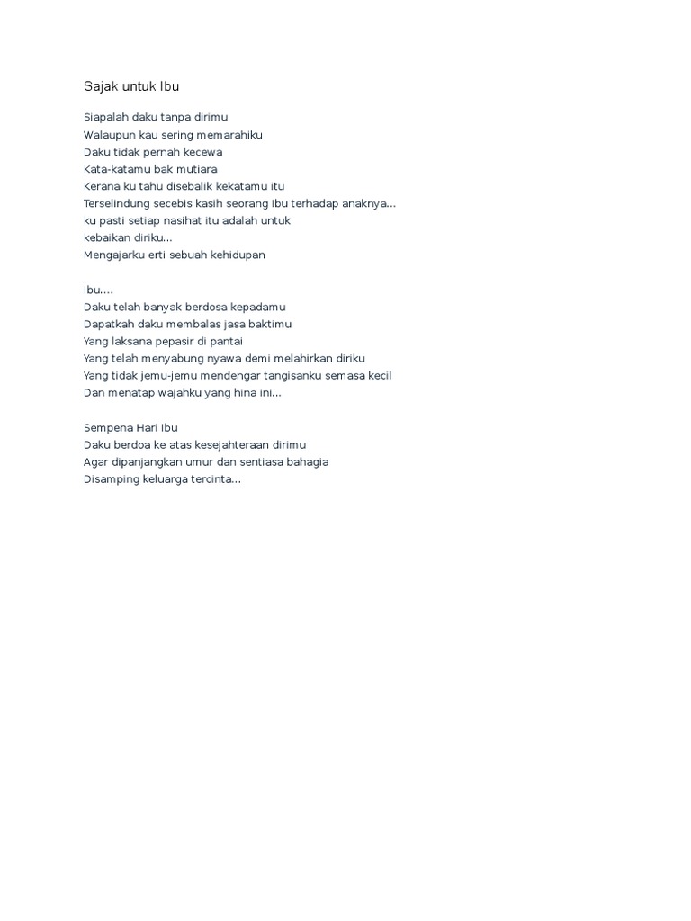 Sajak Pengorbanan Ibu. Lihat betapa banyaknya puisi tentang ibu dibuat. Panduan karangan edit flip ebook pages 1 23 anyflip.