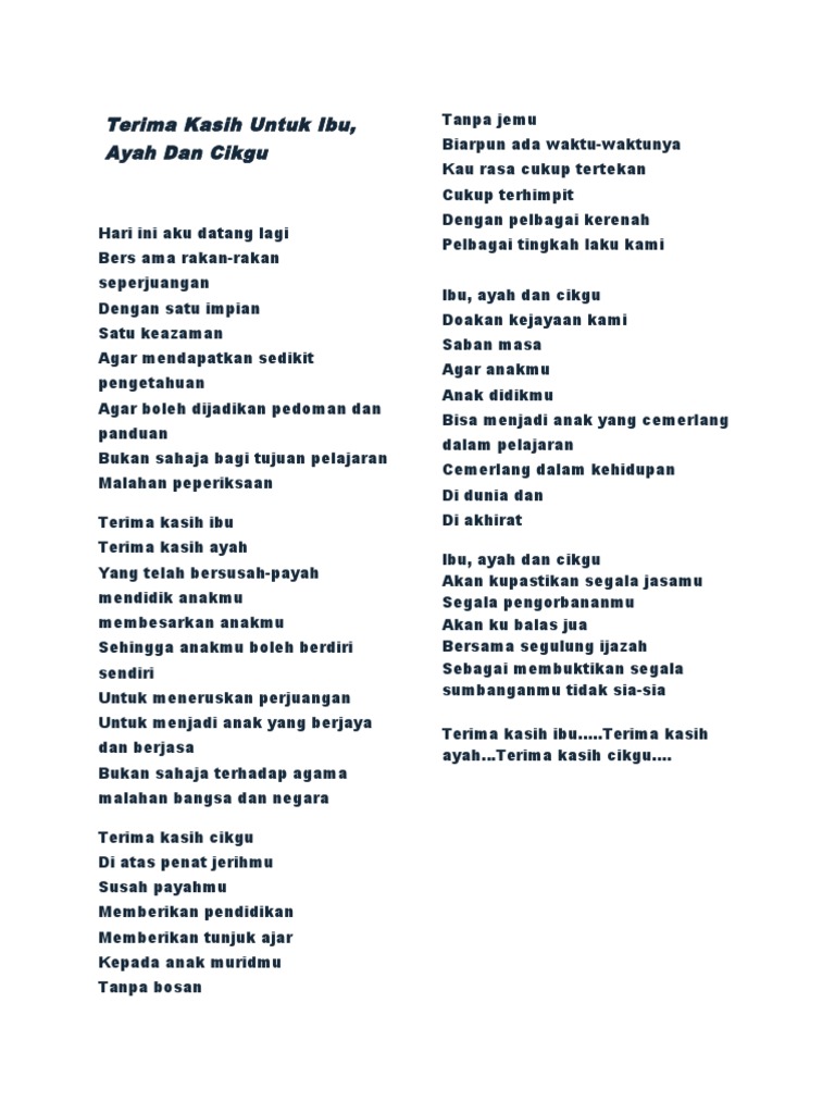 Tentang gold gospel dan glory Melaka sudah lebih 30. Contoh sajak kasih sayang ibu bapa. Kahariwangna Bapa anu teu aya watesna Kaubaran ku ngagoakna ceurik kuring.